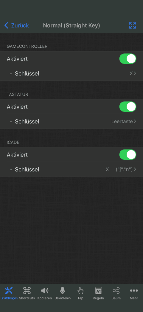 - Tap: Morse characters (.,-,/, ) that are used in the Tap (and Convert) screens can be configured.