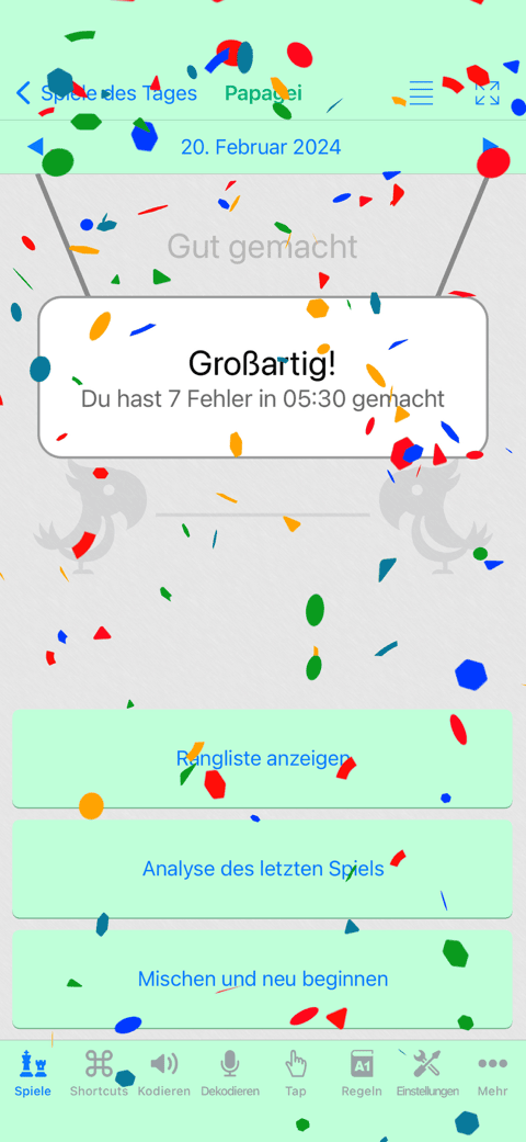 Derzeit sind 3 verschiedene Spiele verfügbar (Wordle, Memory und Finde das Tier)