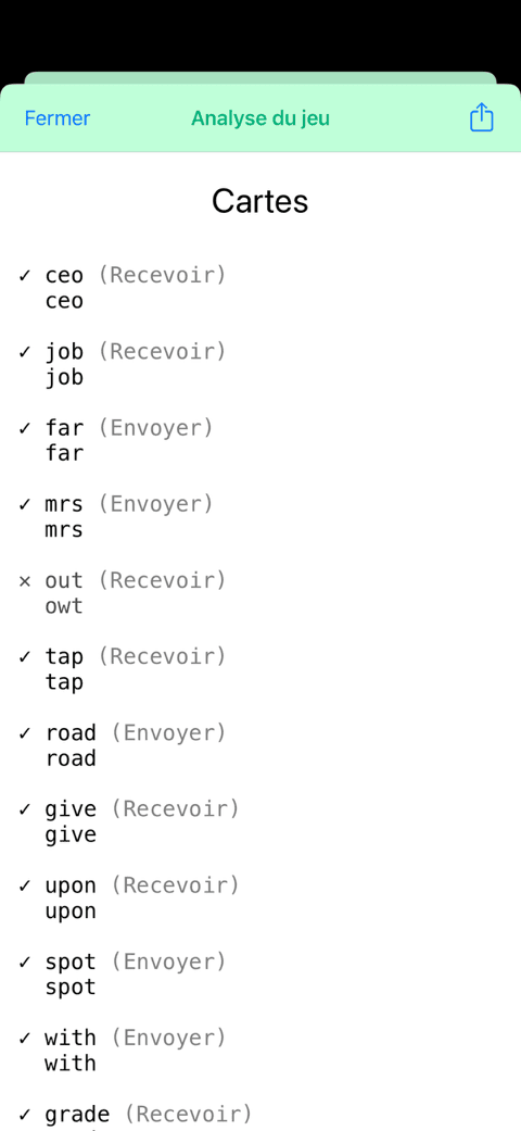 Le texte tapé et décodé peut être édité puis exporté vers le presse papier, un SMS ou un mail (au sein de l'application).