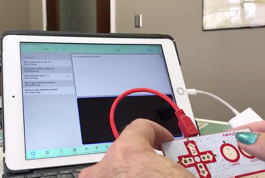 Keyboards, connected using bluetooth, or using USB (thanks to a Camera Connection Kit), can also be used.Every keyboard key can be assigned to the dit or dah areas of the touch screen.