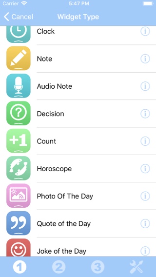- General : The app now contains 3 free widget (Note, Count, and Decision).