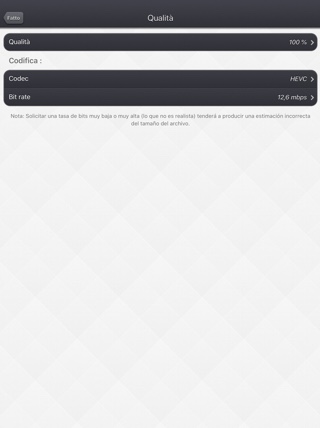 - Se il dispositivo lo supporta, scegliere di ricodificare il video in formato HEVC occupando la metà dello spazio del formato H264.